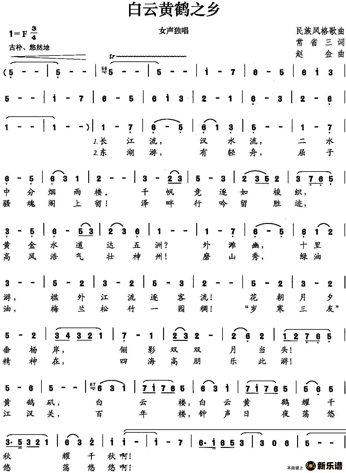 演唱的黄鹤白云之乡歌词,黄鹤白云之乡简谱.