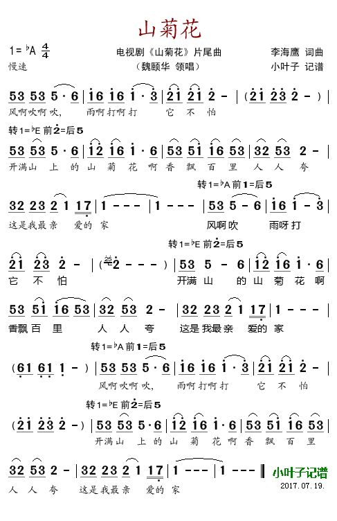 《山菊花(电视剧《山菊花》片尾曲)》简谱 魏颐华-小叶子制谱