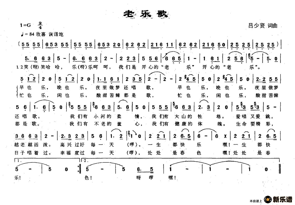 演唱的老乐歌歌词,老乐歌简谱.
