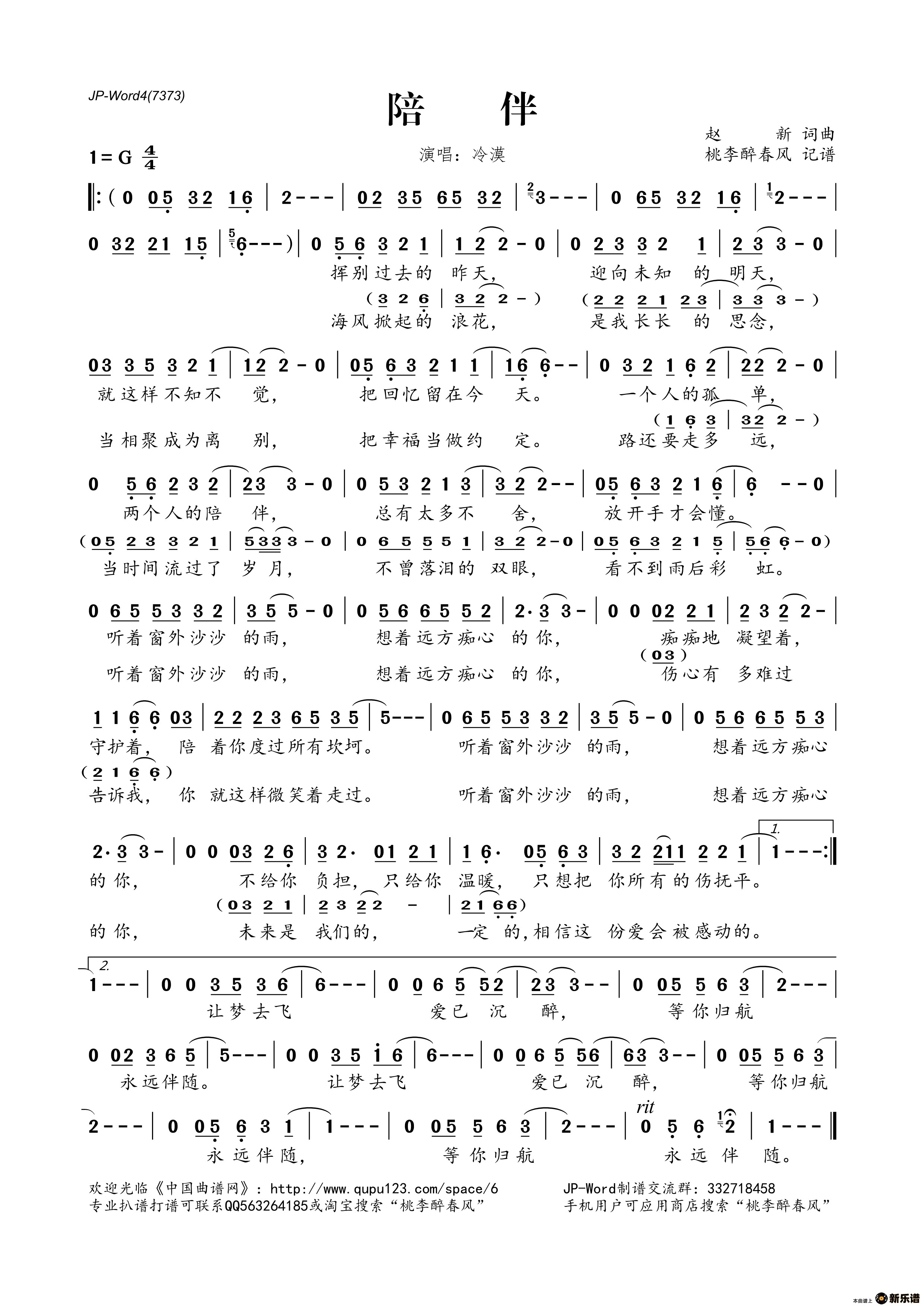 《陪伴》简谱 冷漠-桃李醉春风制谱