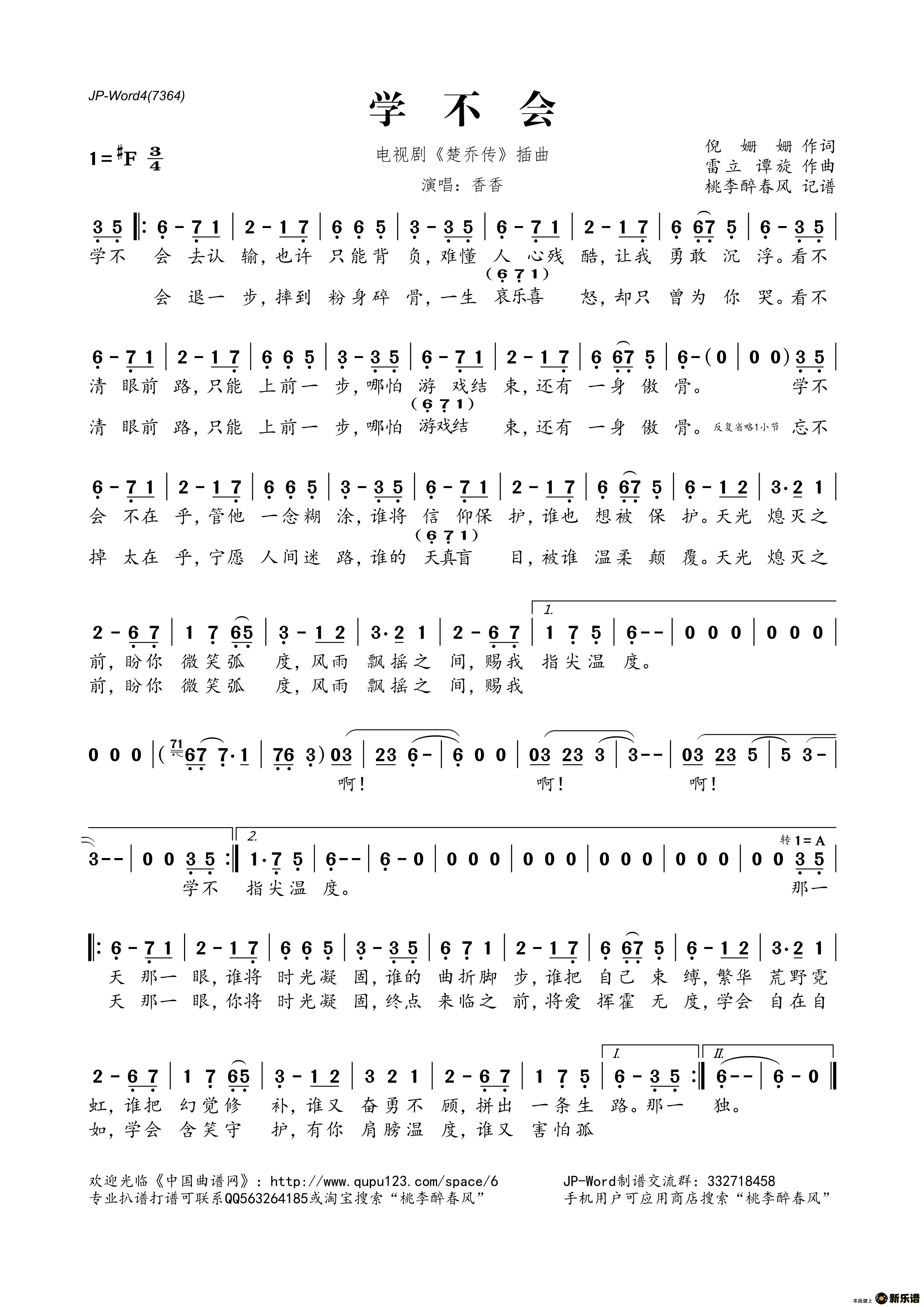 学不会(电视剧《楚乔传》插曲)最新曲谱