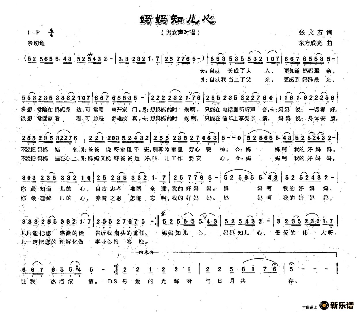 演唱的妈妈知儿心歌词,妈妈知儿心简谱.