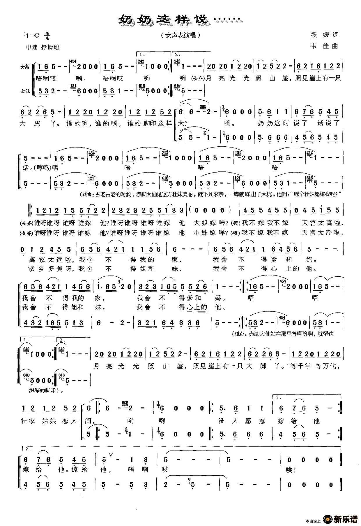 演唱的奶奶这样说……歌词,奶奶这样说……简谱.