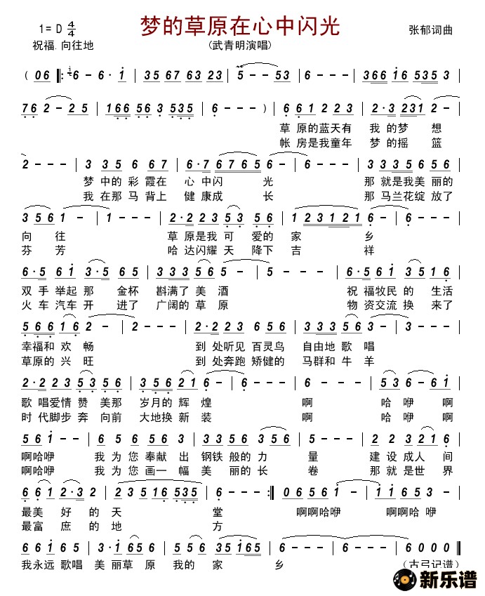 武青明演唱的梦的草原在心中闪光歌词,梦的草原在心中闪光简谱.