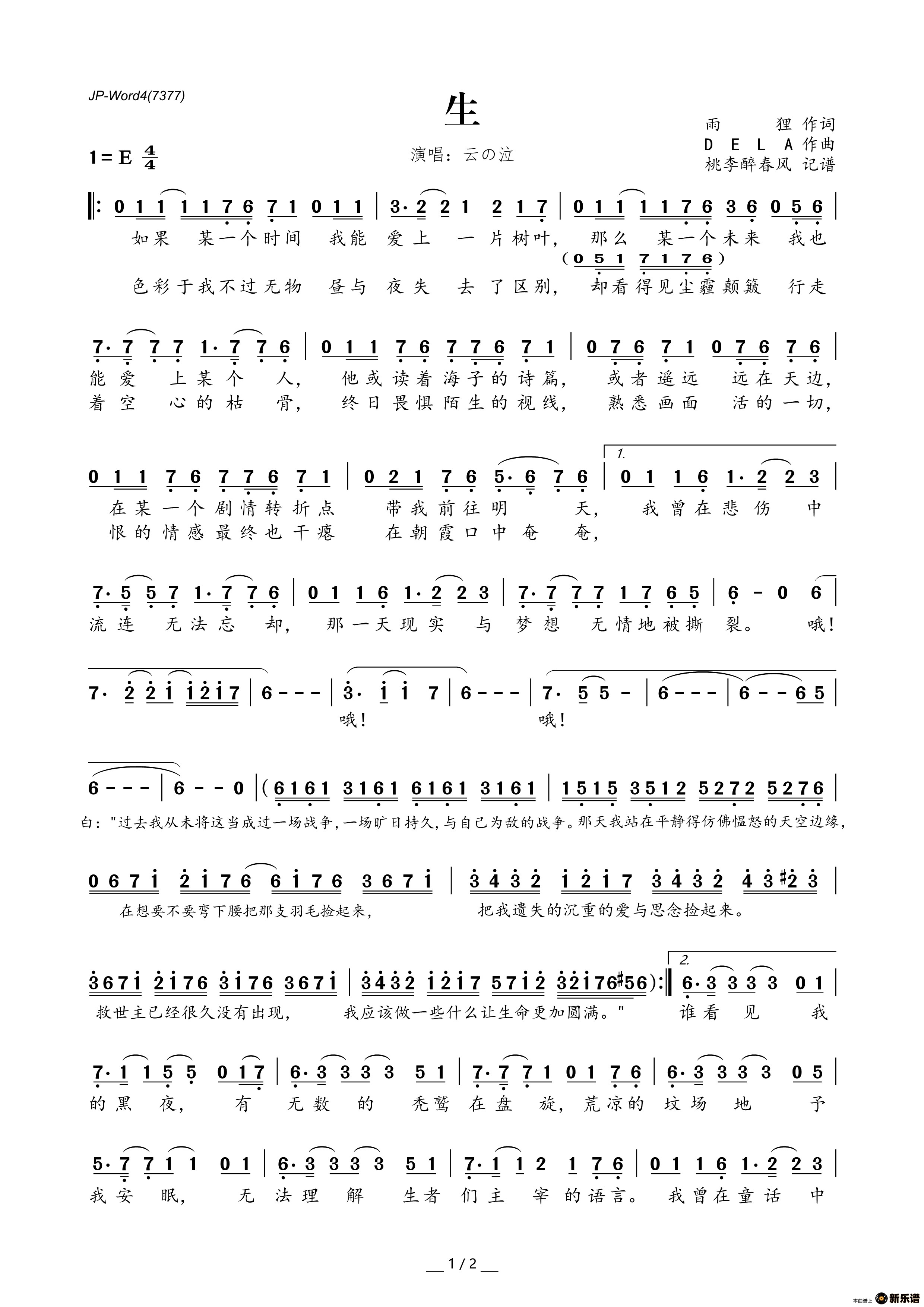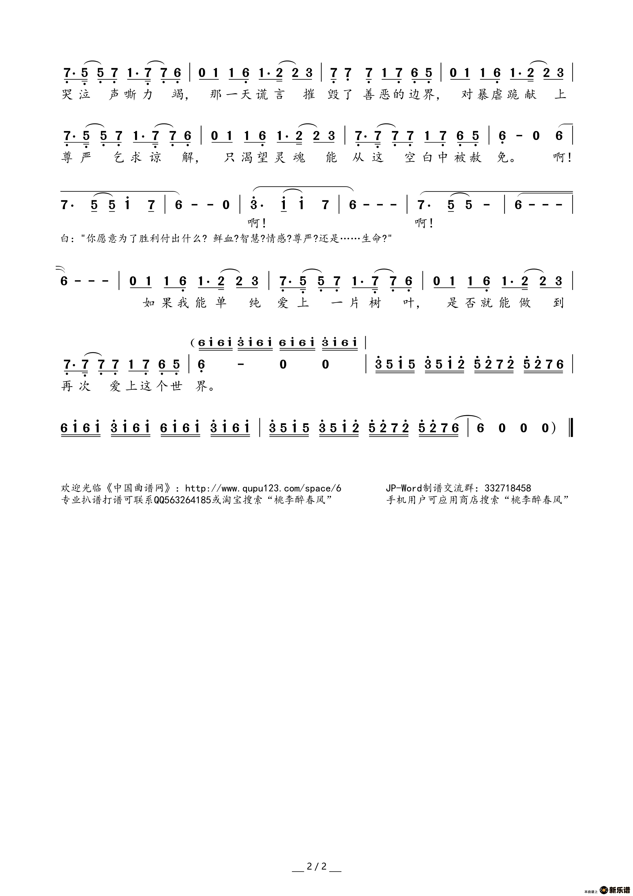 苍生(电视剧《苍生》主题曲)最新曲谱