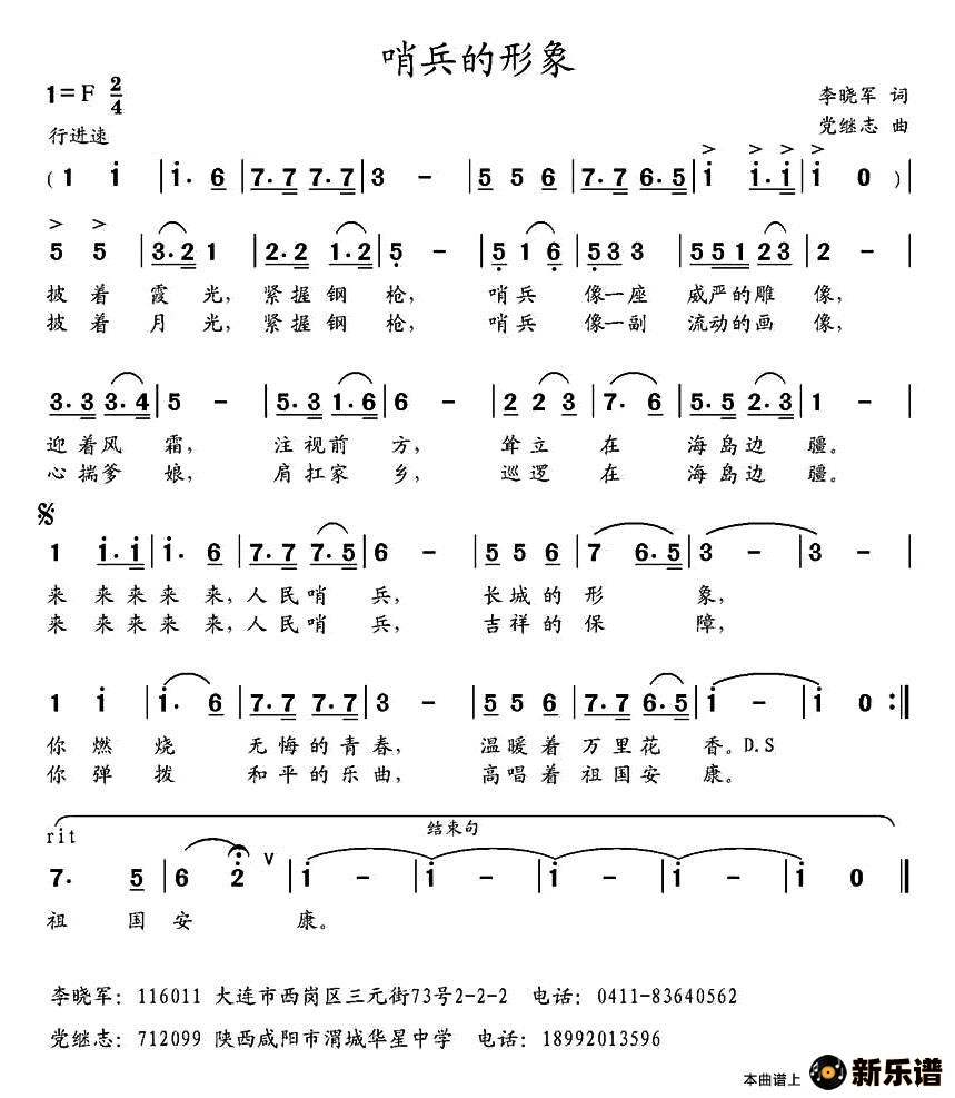 演唱的哨兵的形象歌词,哨兵的形象简谱.