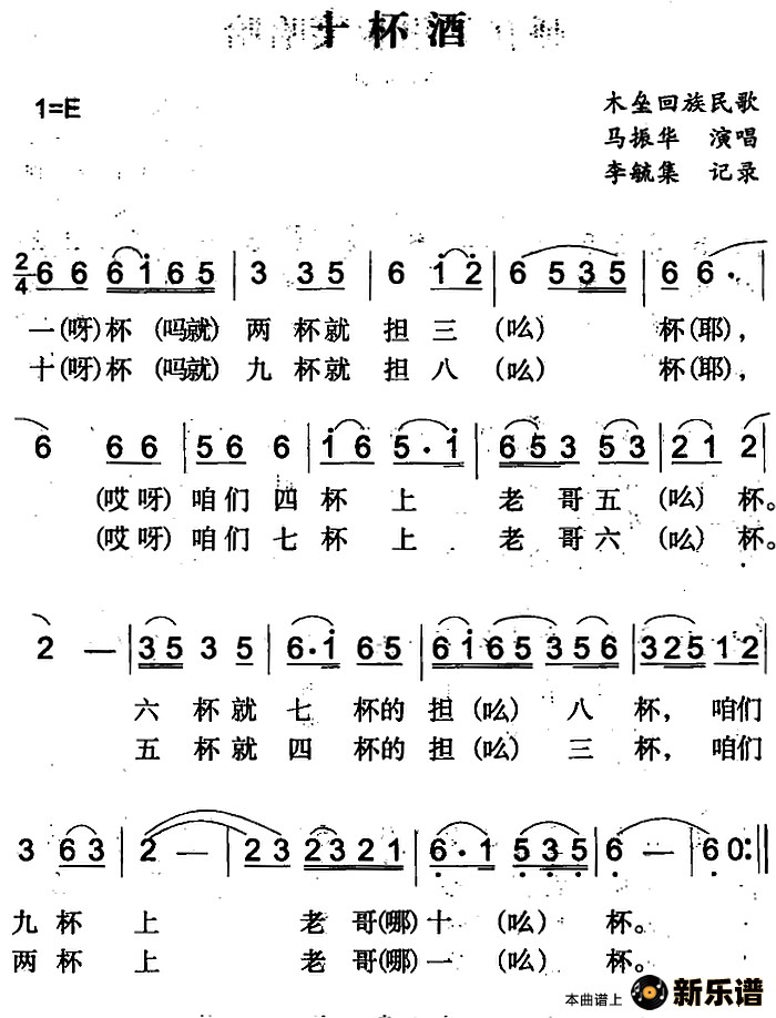 《十杯酒》简谱