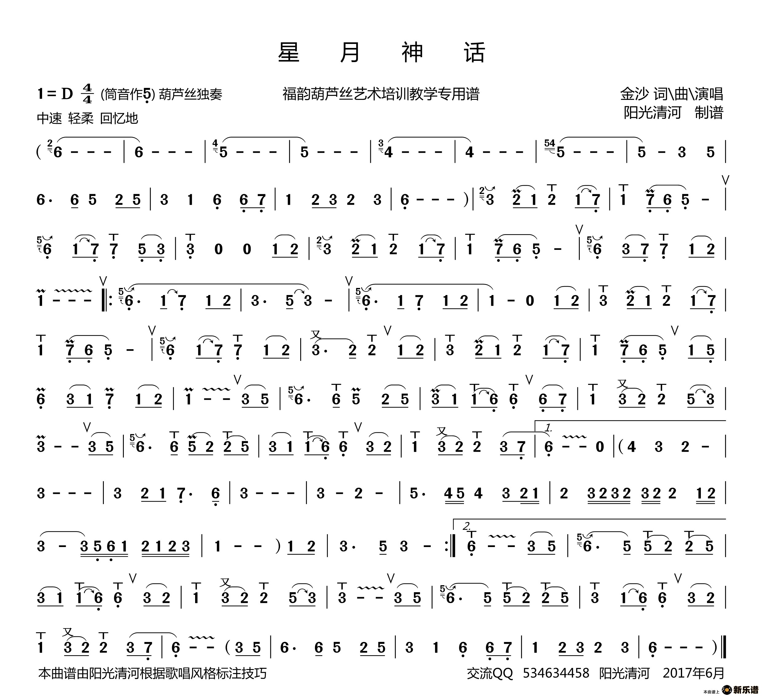 演唱的星月神话(葫芦丝谱)歌词,星月神话(葫芦丝谱)简谱.