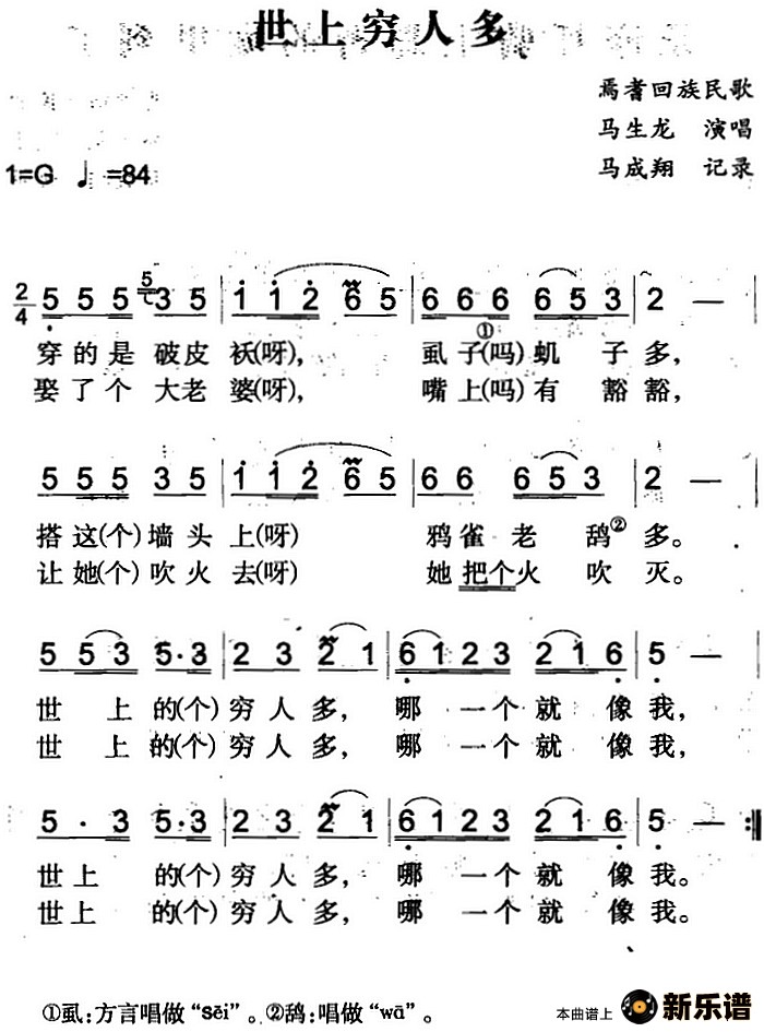 演唱的世上穷人多歌词,世上穷人多简谱.