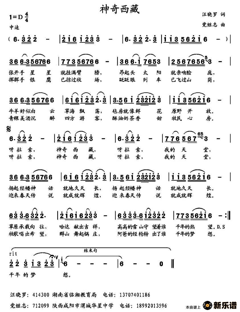 演唱的神奇西藏歌词,神奇西藏简谱.