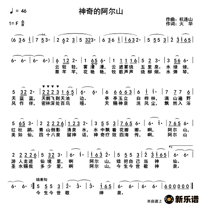 演唱的神奇的阿尔山歌词,神奇的阿尔山简谱.