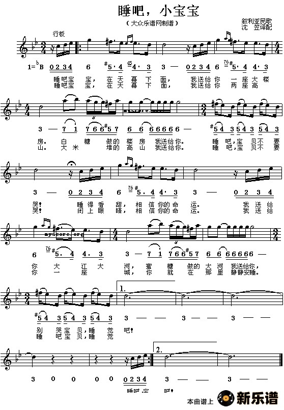 演唱的[叙利亚]睡吧,小宝宝(线简谱对照版)歌词,[叙利亚]睡吧,小宝宝(线简谱对照版)简谱.