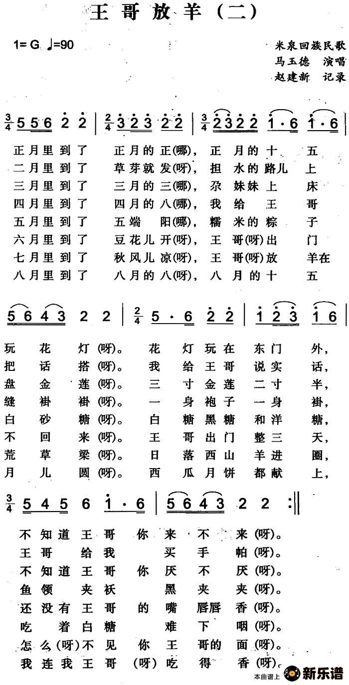演唱的王哥放羊(二)歌词,王哥放羊(二)简谱.