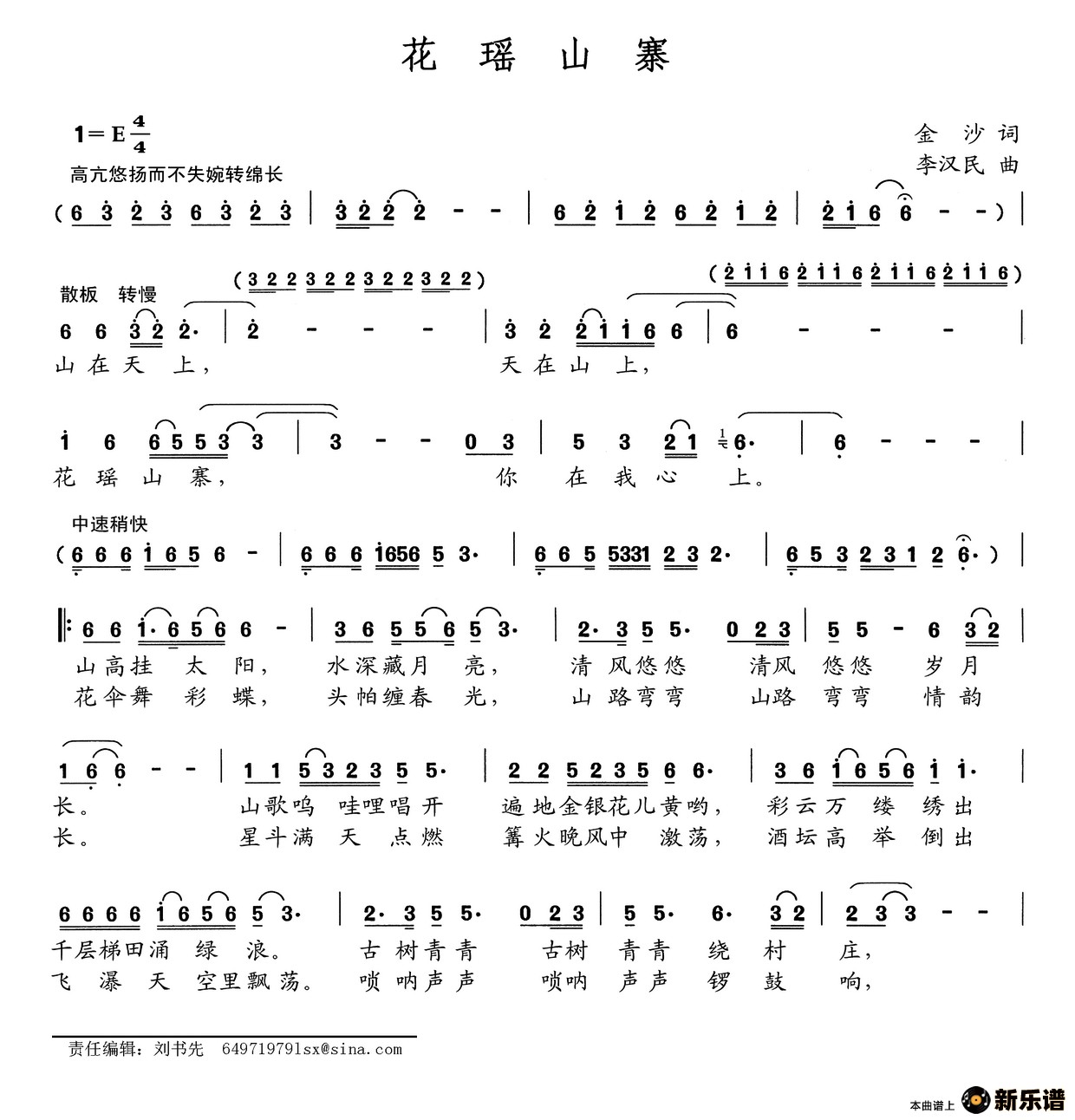 演唱的花瑶山寨歌词,花瑶山寨简谱.