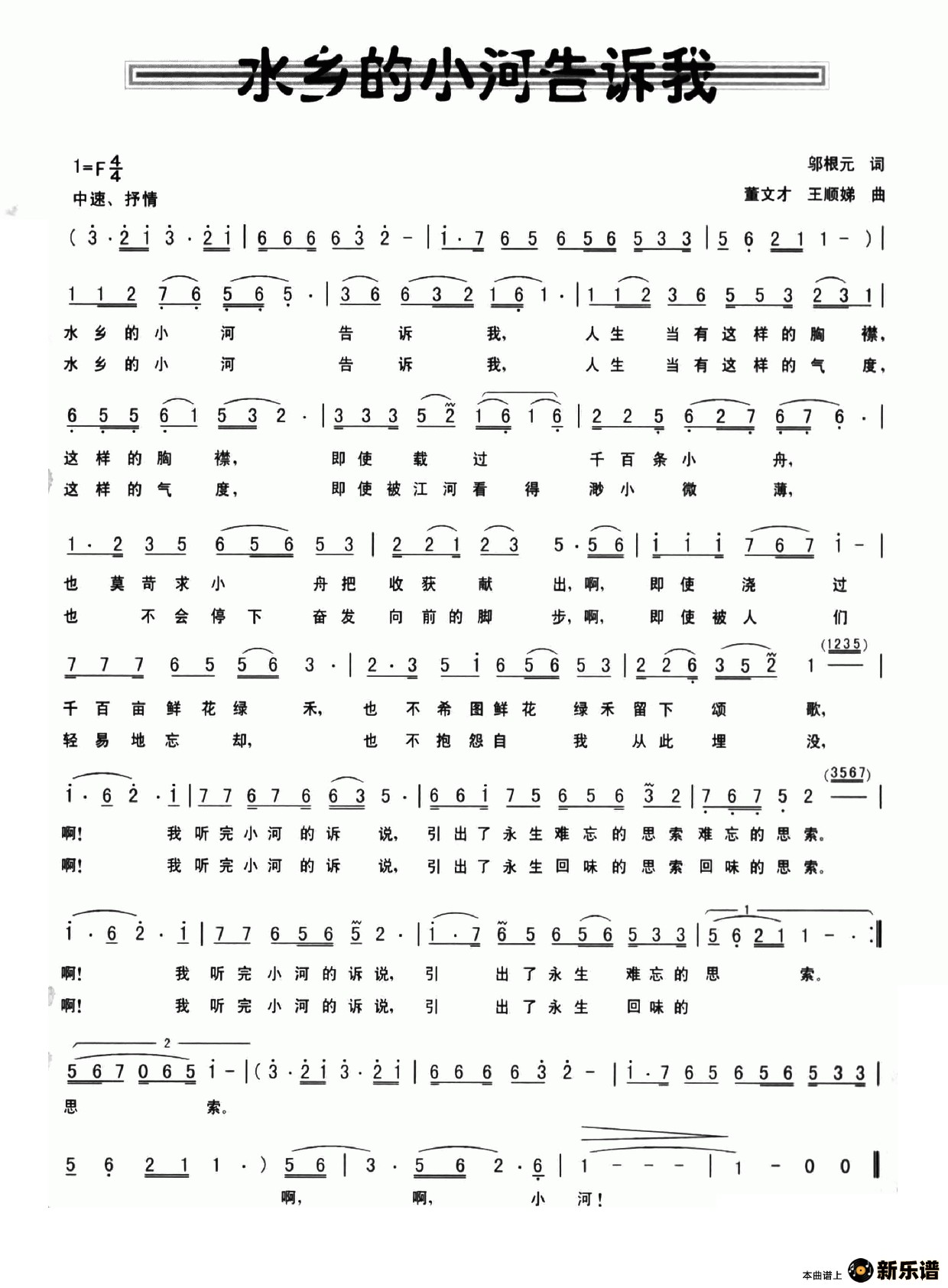 演唱的水乡的小河告诉我歌词,水乡的小河告诉我简谱.