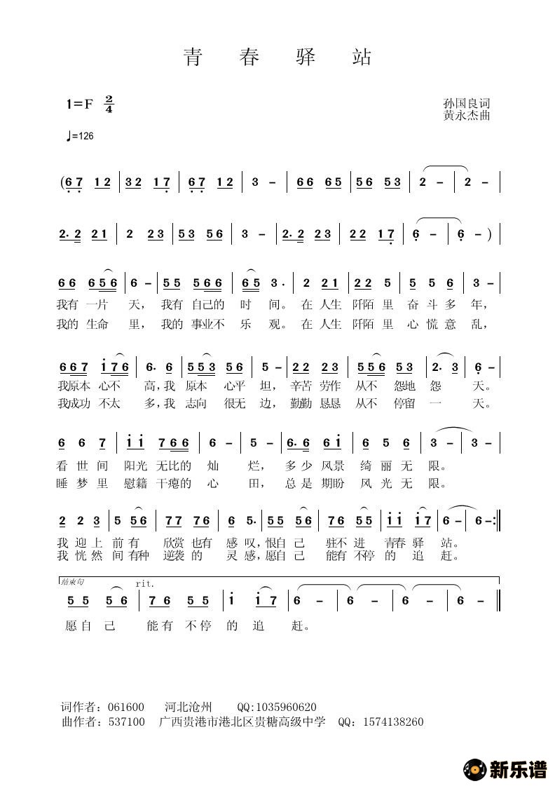 演唱的青春驿站歌词,青春驿站简谱.