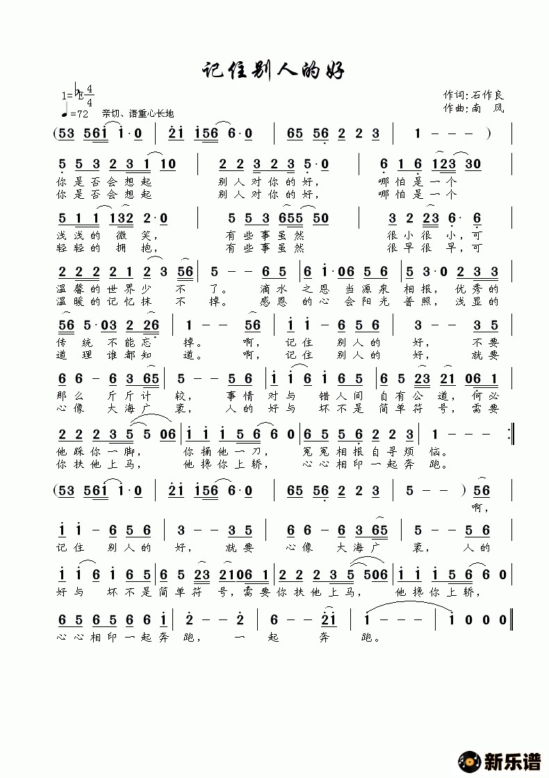 《记住别人的好》简谱
