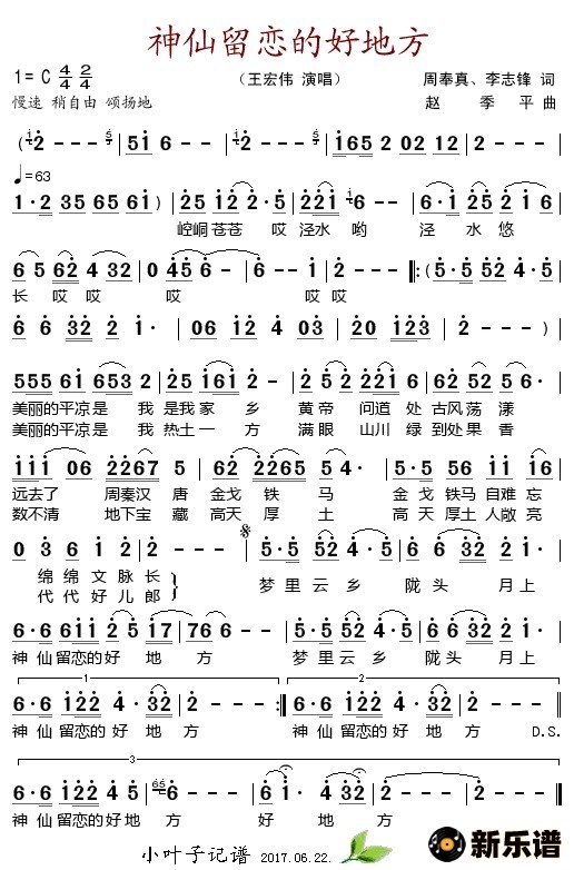 《神仙留恋的好地方》简谱 王宏伟-小叶子制谱
