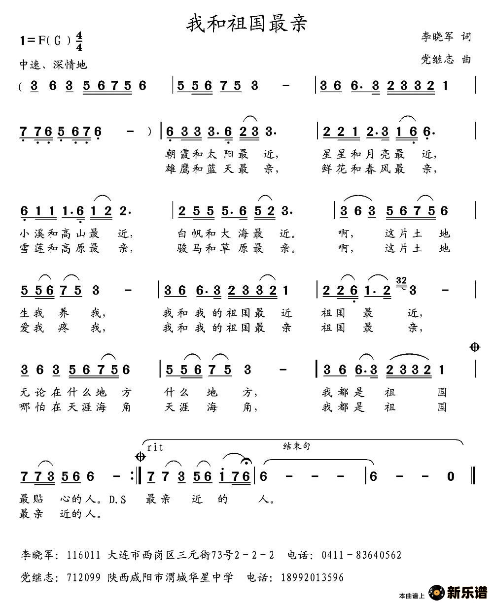 演唱的我和祖国最亲歌词,我和祖国最亲简谱.