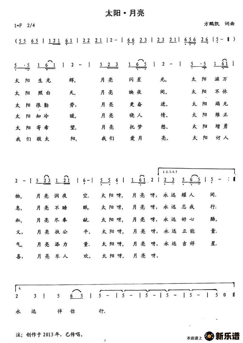 演唱的太阳·月亮歌词,太阳·月亮简谱.