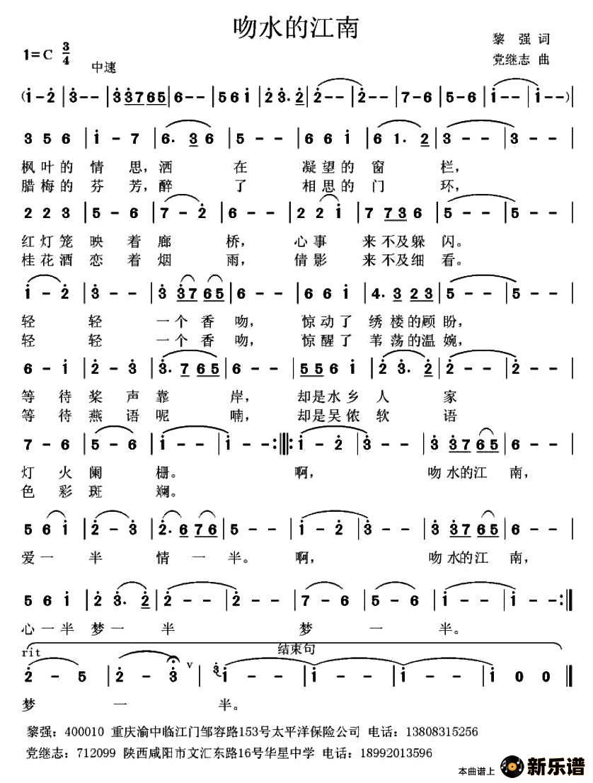 演唱的吻水的江南歌词,吻水的江南简谱.