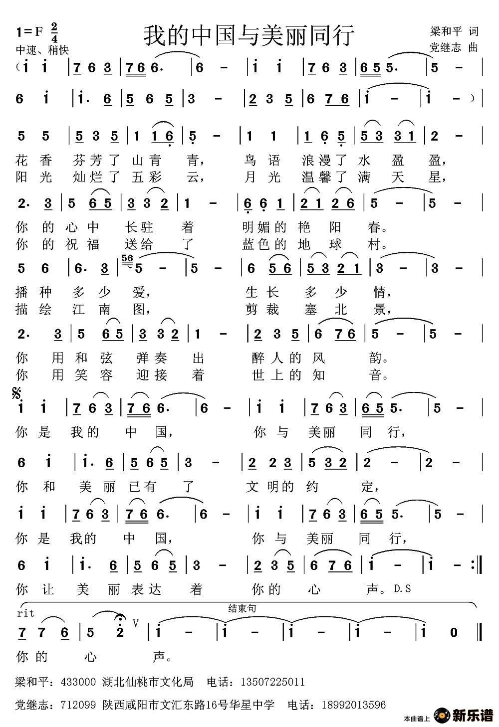 演唱的我的中国与美丽同行歌词,我的中国与美丽同行简谱.