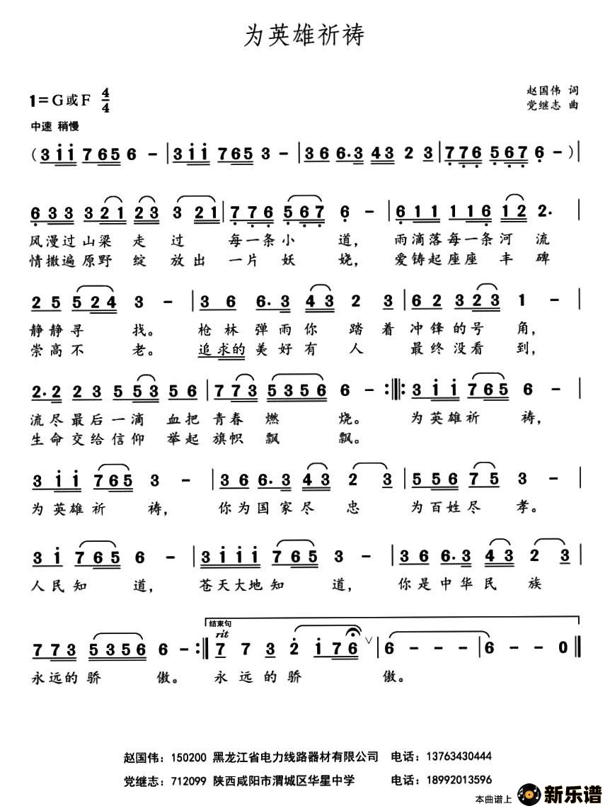 演唱的为英雄祈祷歌词,为英雄祈祷简谱.