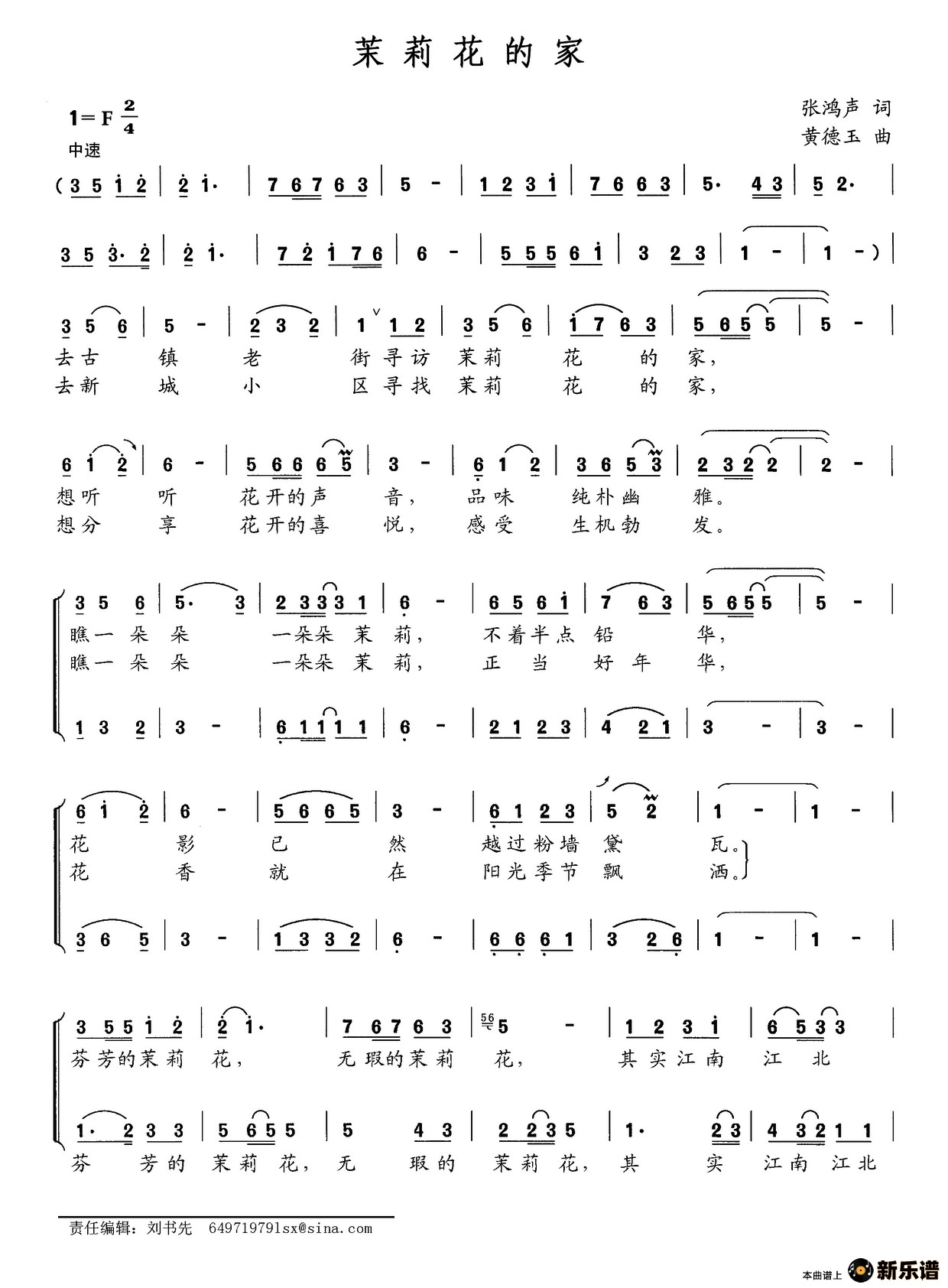 演唱的茉莉花的家歌词,茉莉花的家简谱.