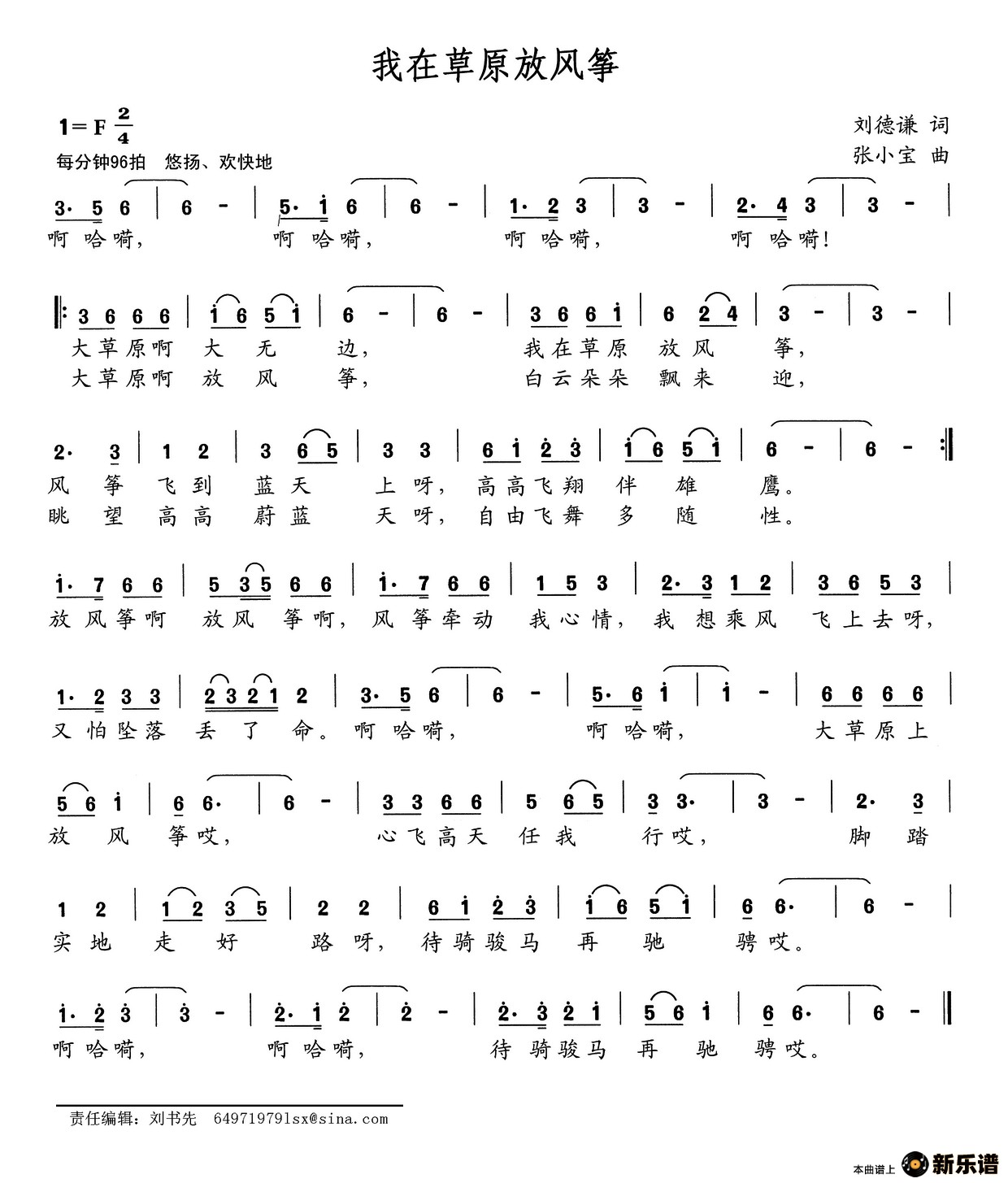 演唱的我在草原放风筝歌词,我在草原放风筝简谱.