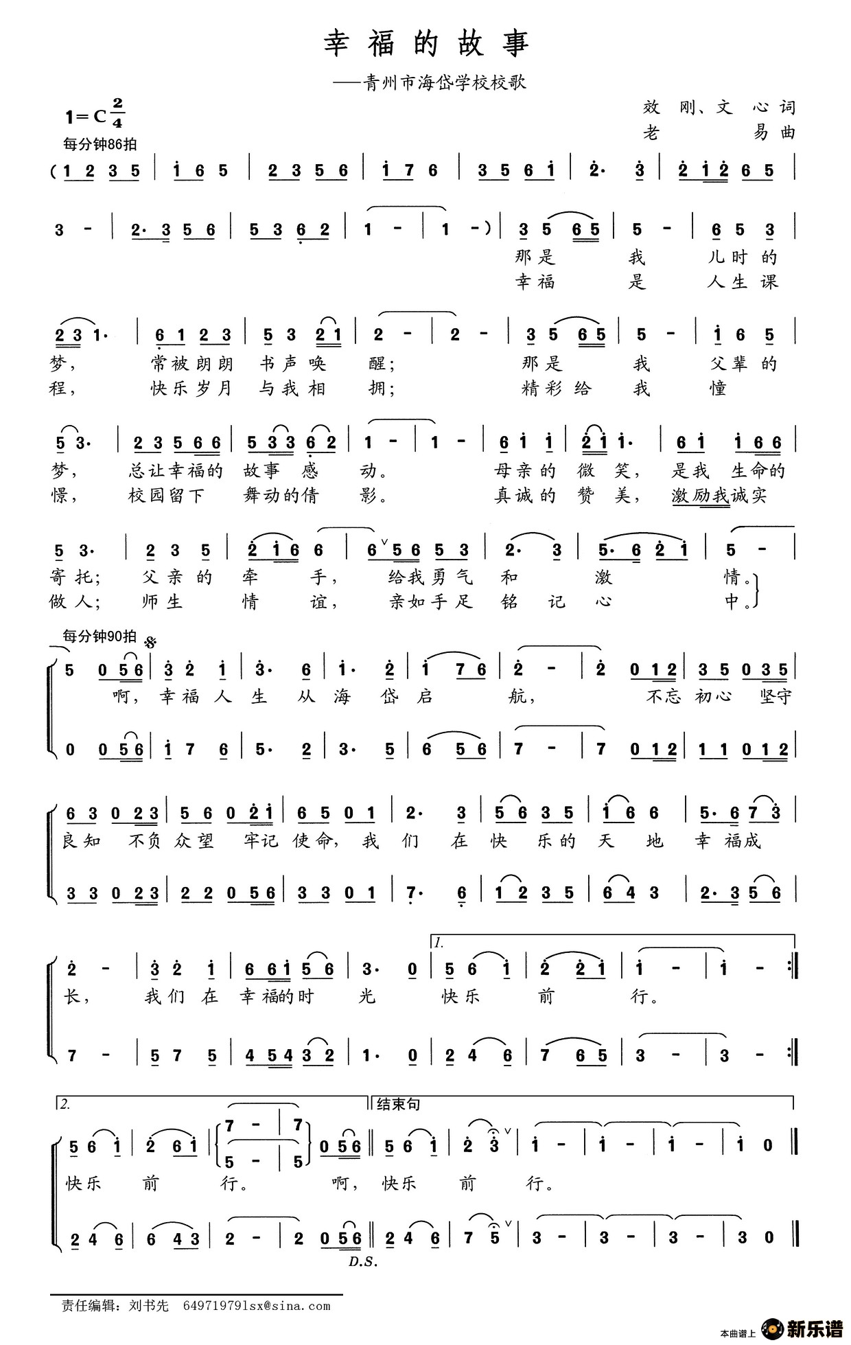 演唱的幸福的故事(青州市海岱学校校歌)歌词,幸福的故事(青州市海岱学校校歌)简谱.