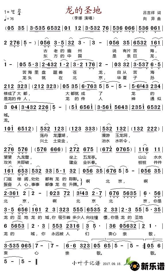 李娜演唱的龙的圣地歌词,龙的圣地简谱.