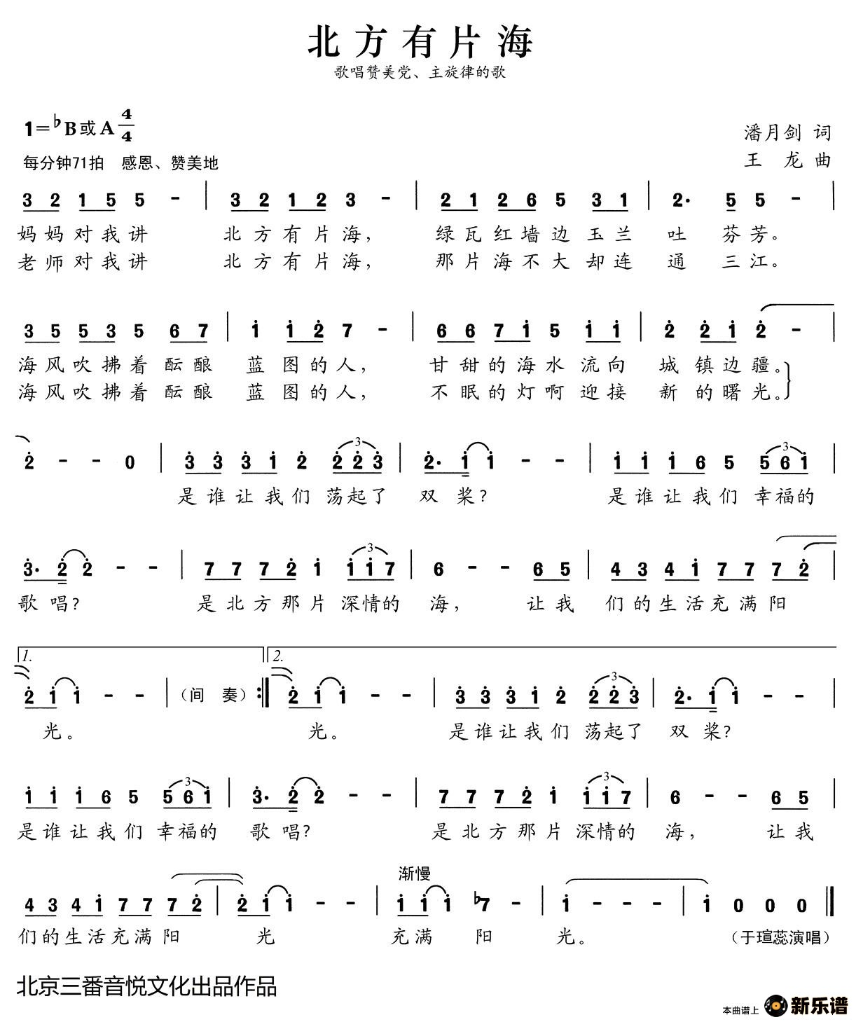 张开歌声的翅膀:21、北方有片海/ 相关曲谱