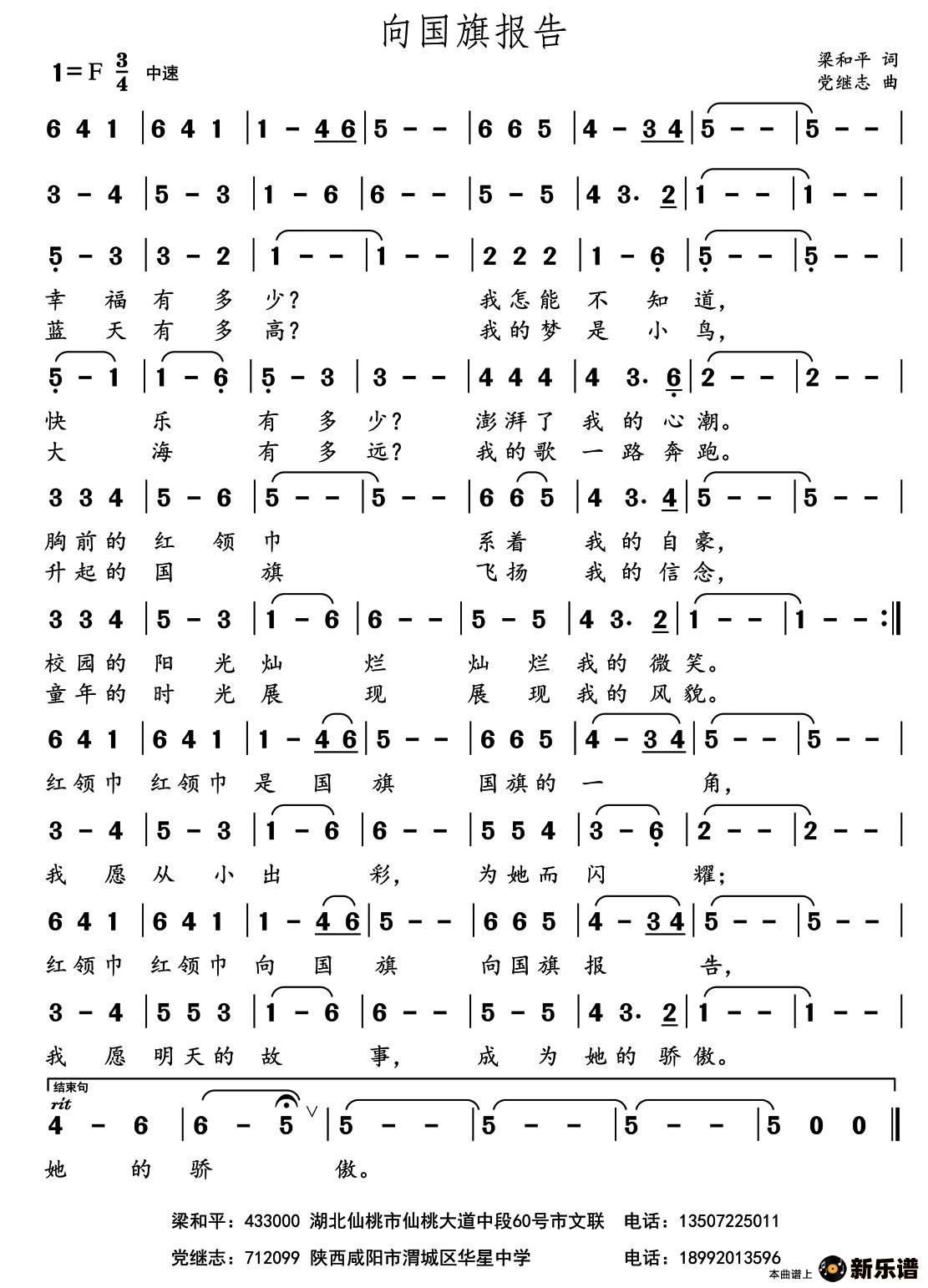 演唱的向国旗报告歌词,向国旗报告简谱.