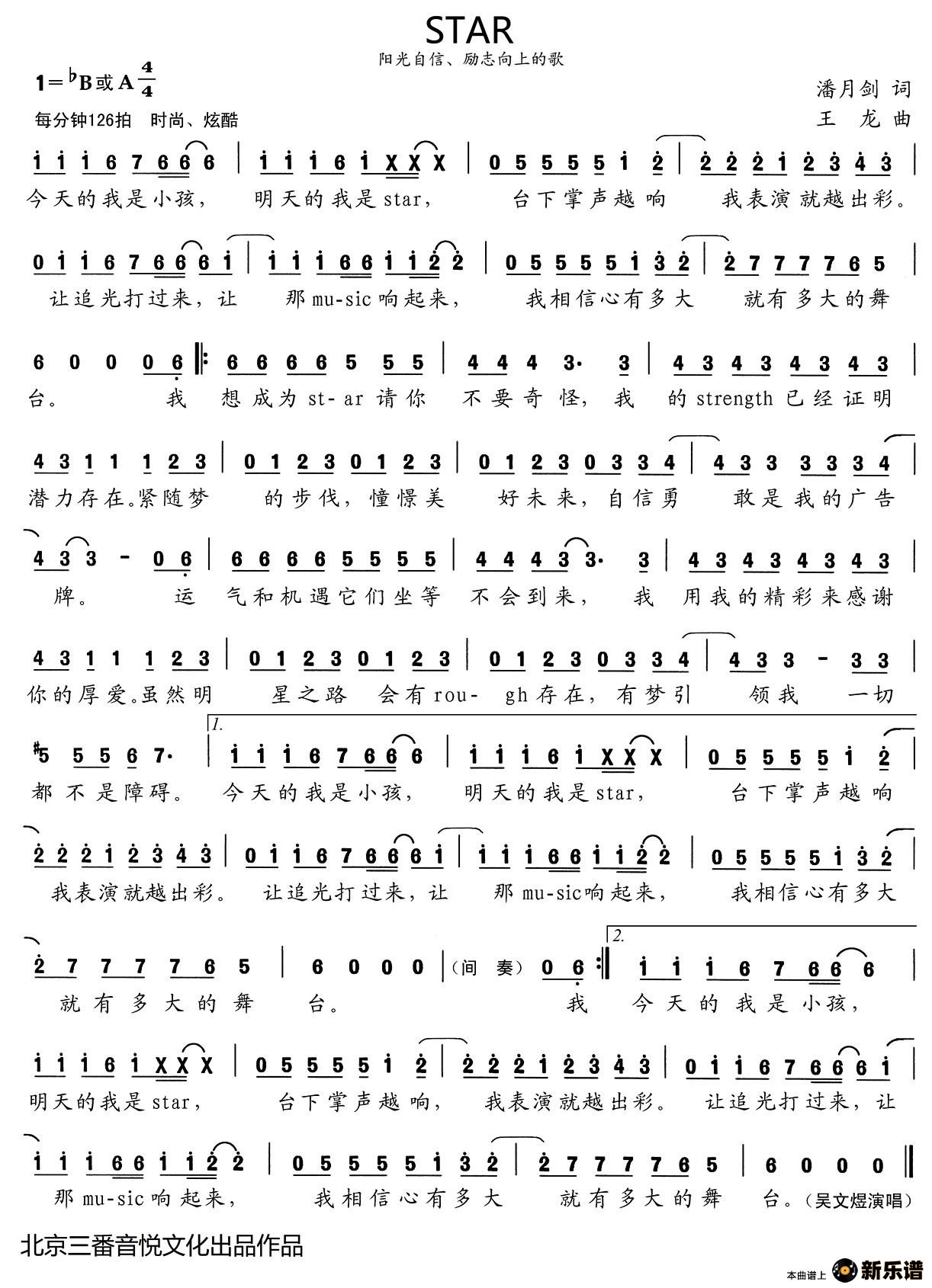 演唱的张开歌声的翅膀:24、STAR歌词,张开歌声的翅膀:24、STAR简谱.