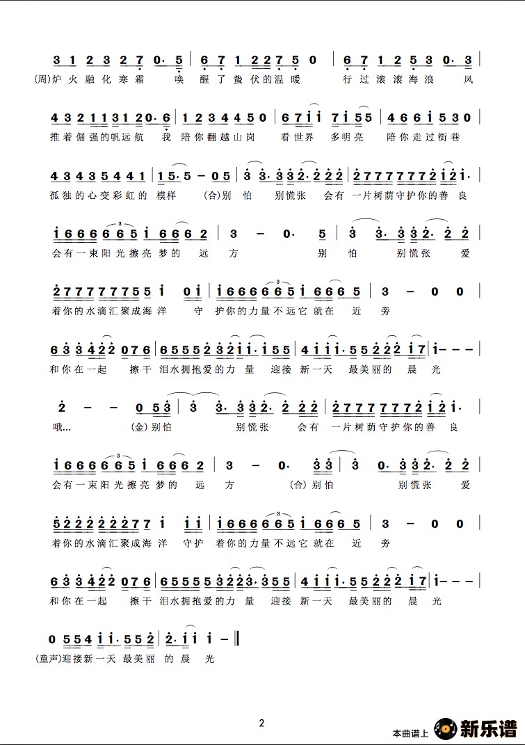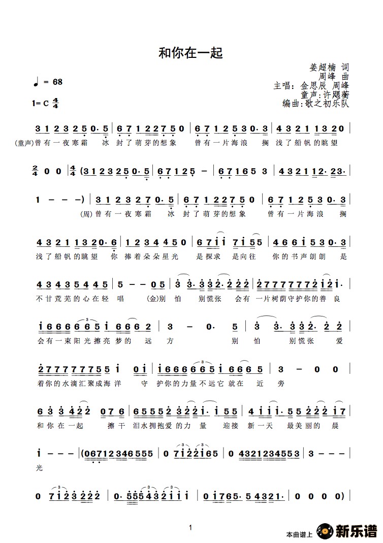 金思辰 周峰演唱的和你在一起歌词,和你在一起简谱.