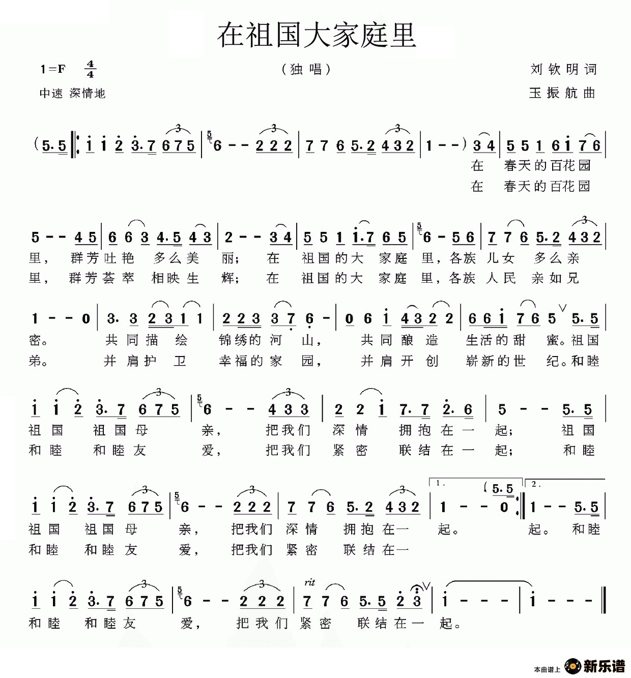 演唱的在祖国大家庭里歌词,在祖国大家庭里简谱.