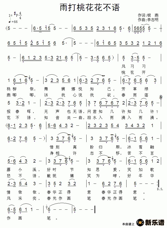 演唱的雨打桃花花不语歌词,雨打桃花花不语简谱.