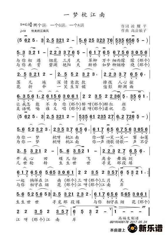 演唱的一梦枕江南歌词,一梦枕江南简谱.