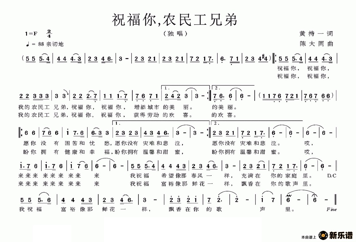 演唱的祝福你,农民工兄弟歌词,祝福你,农民工兄弟简谱.