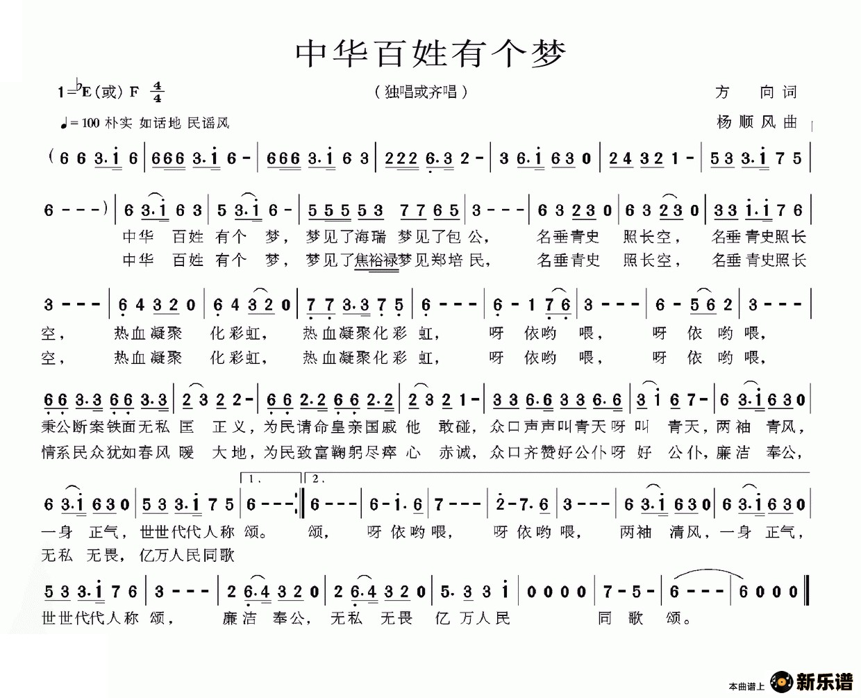 演唱的中华百姓有个梦歌词,中华百姓有个梦简谱.