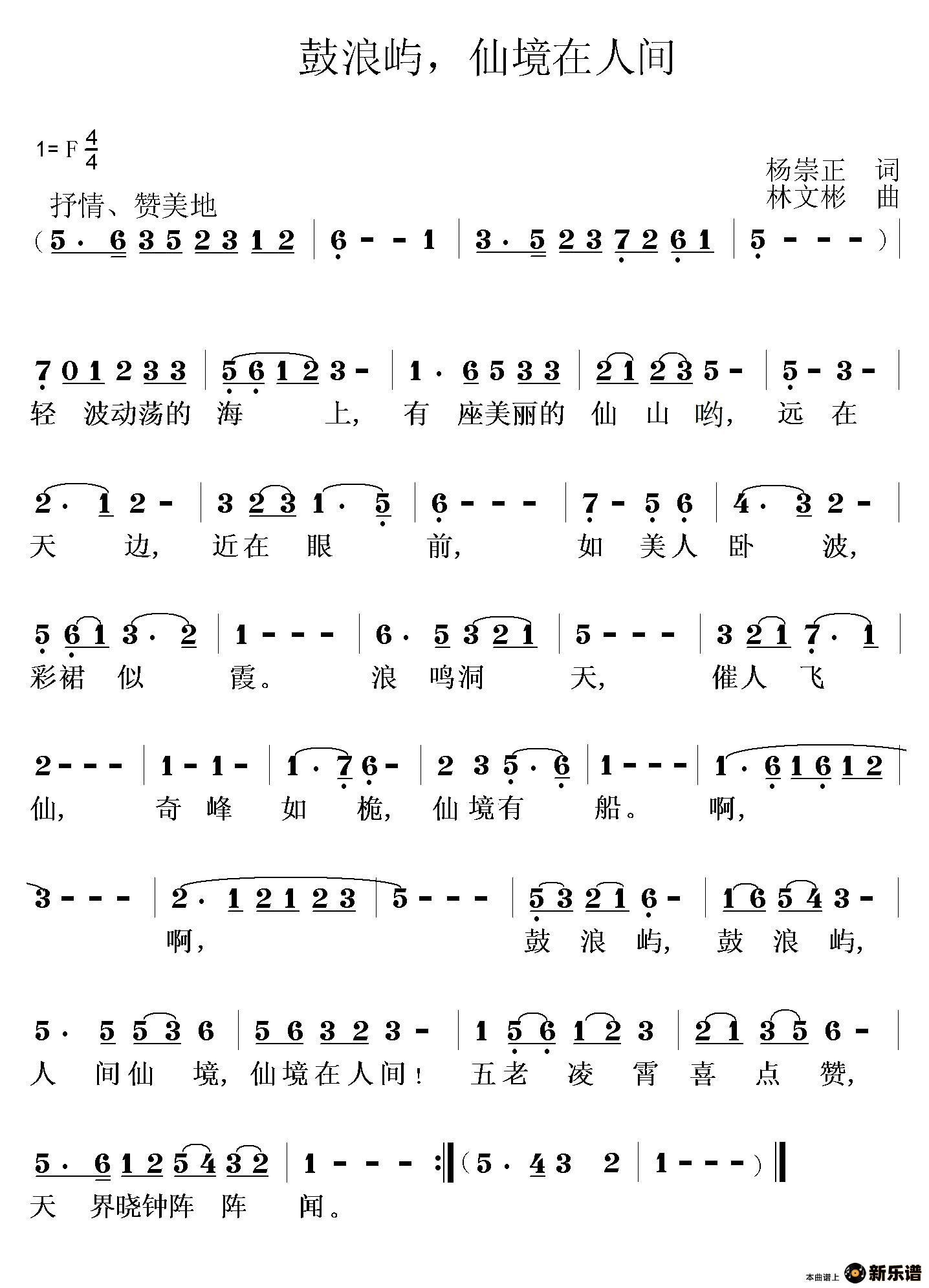 演唱的鼓浪屿,仙境在人间歌词,鼓浪屿,仙境在人间简谱.