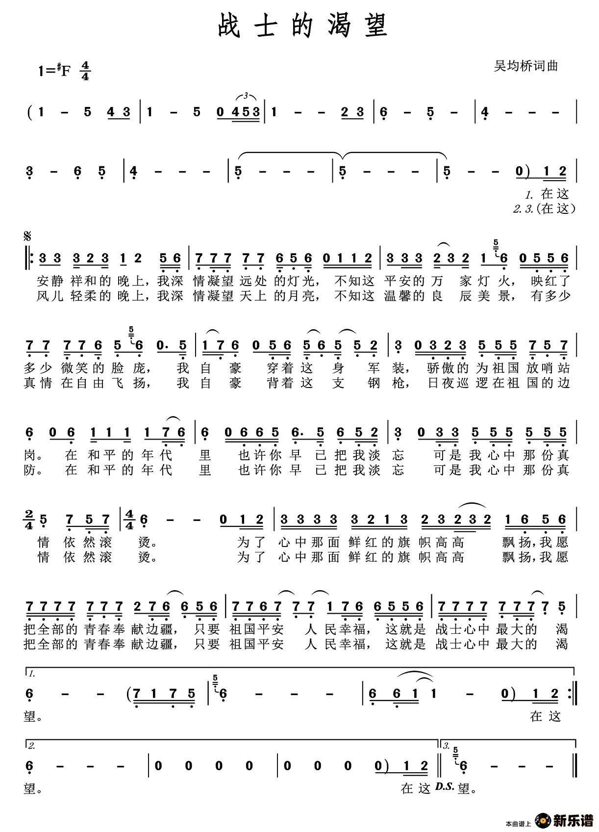 演唱的战士的渴望歌词,战士的渴望简谱.