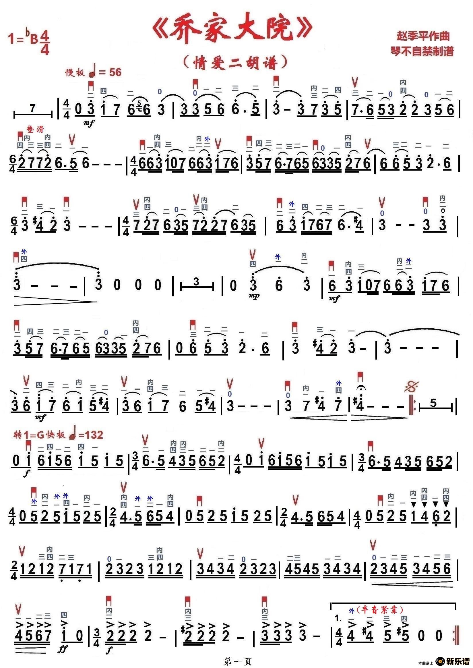 演唱的乔家大院组曲3情爱(二胡谱)歌词,乔家大院组曲3情爱(二胡谱)简谱.