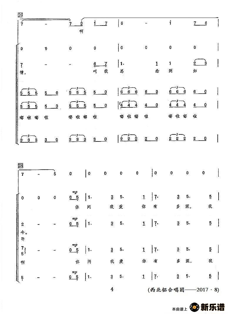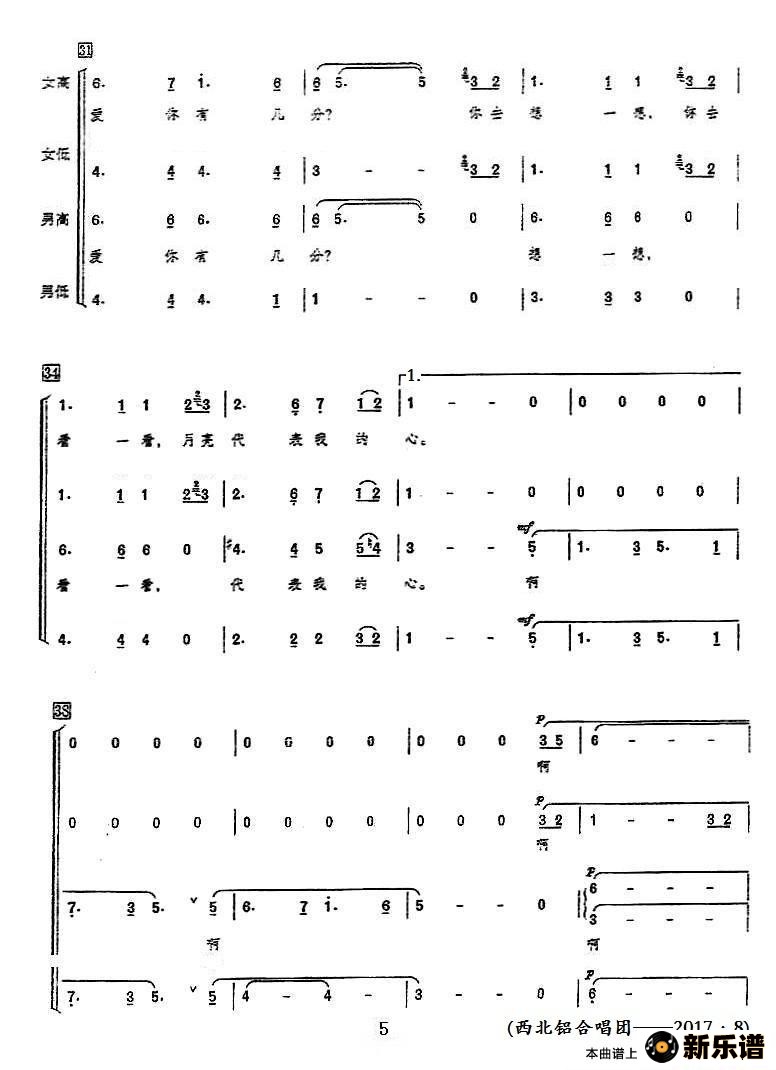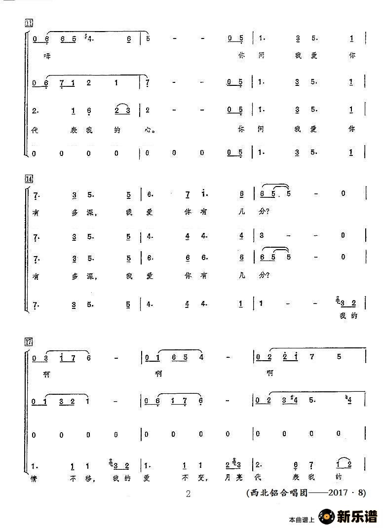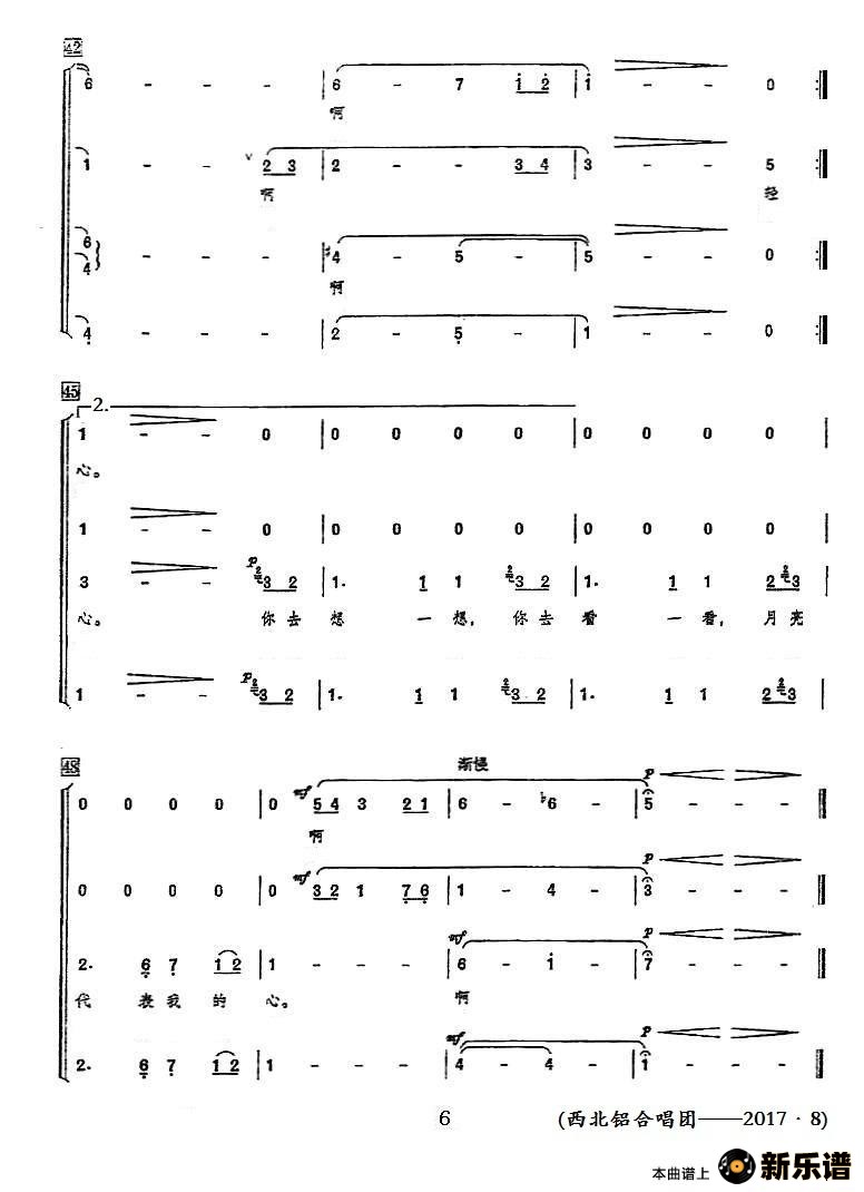 演唱的月亮代表我的心(领唱+混声合唱)歌词,月亮代表我的心(领唱+混声合唱)简谱.