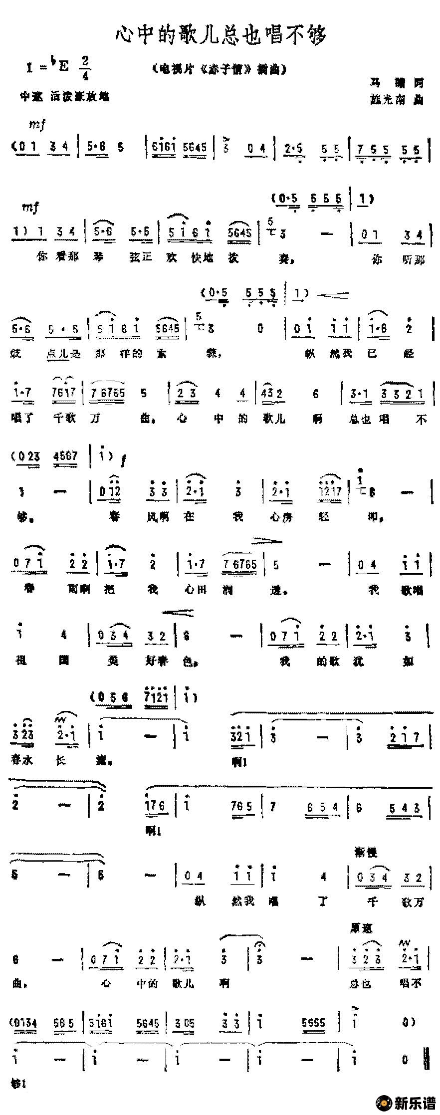 > 心中的歌儿总也唱不够(电视片《赤子情》插曲)简谱