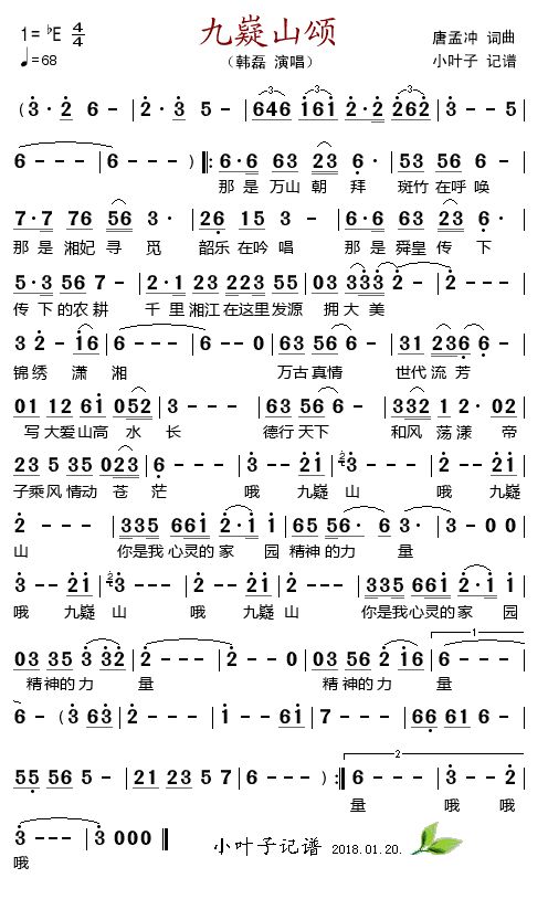 《九嶷山颂》简谱 韩磊-小叶子制谱