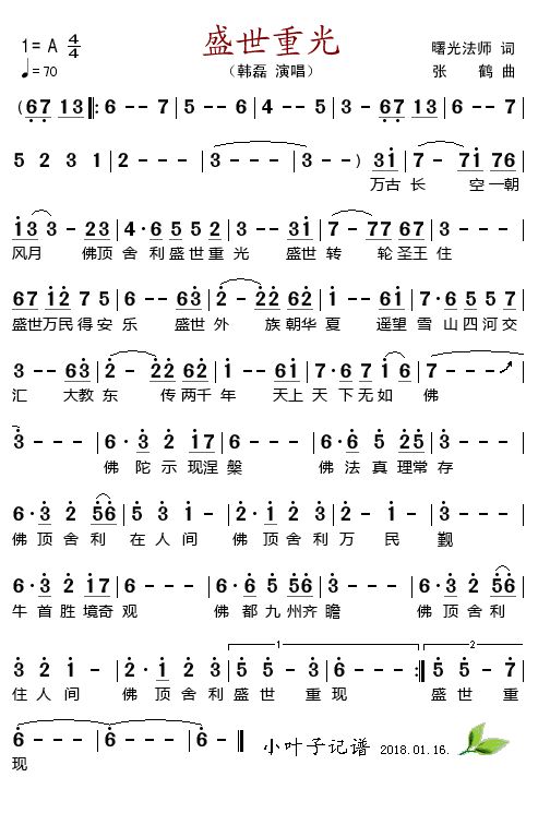 韩磊演唱的盛世重光歌词,盛世重光简谱.