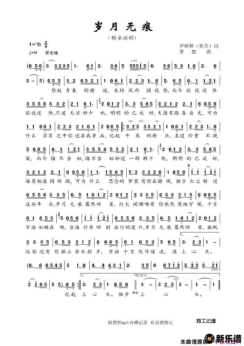 梅朵演唱的岁月无痕歌词,岁月无痕简谱.