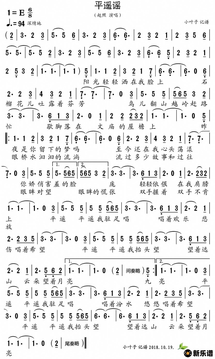赵照演唱的平遥谣歌词,平遥谣简谱.