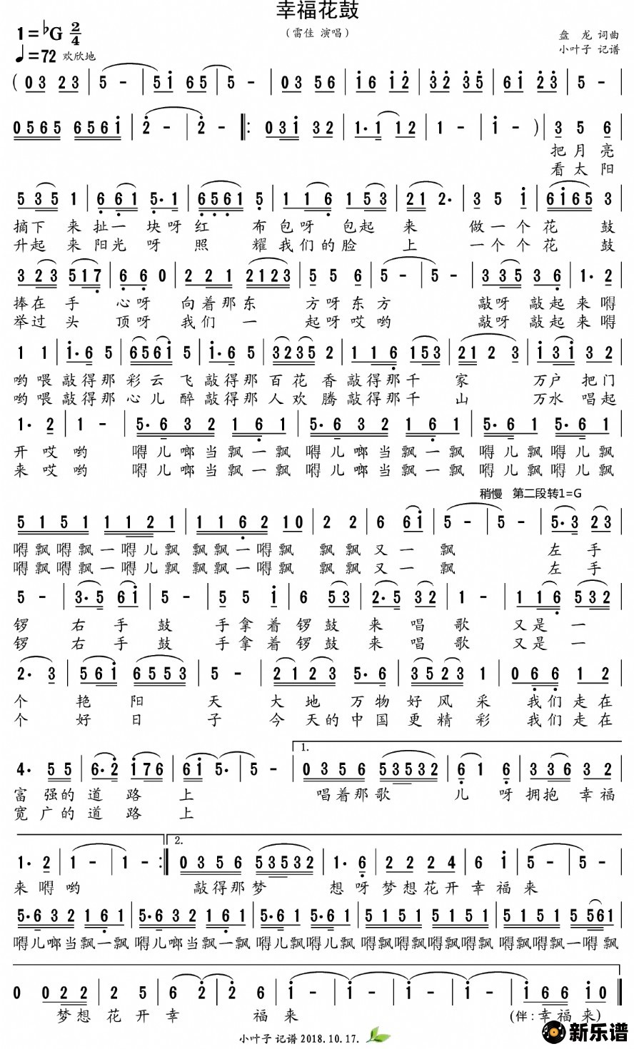 《幸福花鼓》简谱 雷佳-小叶子制谱